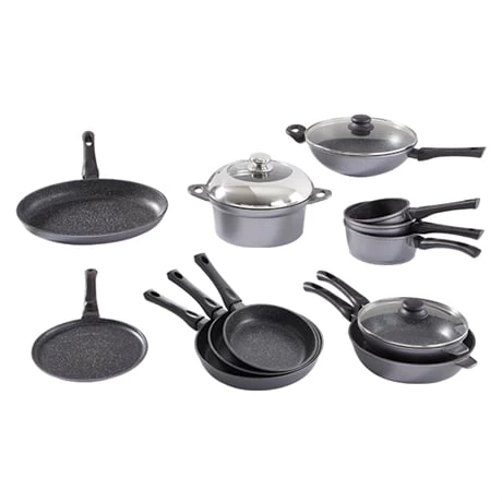 En fonte d’aluminium avec un revêtement unique antiadhérent garanti sans PFOA, les matériaux nobles durs comme la pierre résistent à un usage intensif et aussi aux éraflures, ce revêtement spécifique est très résistant et garantit que les ustensiles ne se déformeront pas avec le temps.