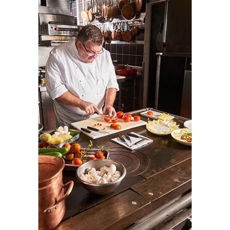 Son manche en polypropylène a Ă©tĂ© conçu pour offrir une bonne prise en main : le manche est Ă©pais, Ă bonne longueur et plus Ă©troit Ă l’avant. Il offrira au couteau d’ĂŞtre indĂ©manchable. Le couteau passe au lave-vaisselle.