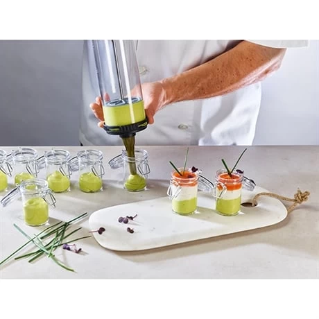Le Tube remplace vos traditionnelles poches à douilles, il fonctionne avec un astucieux système de seringue afin de rendre tous les pochages aisés. Remplir, garnir, fourrer, doser ou encore décorer, vous pouvez tout faire avec ce piston à pression lavable et réutilisable.