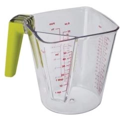 Ce Verre mesureur gradué 2 en 1 de Joseph Joseph contient 2 compartiments permettant de mesurer précisément des liquides de 5ml à 1L. Maniable, sa forme carré et sa poignée ergonomique permettent de verser facilement, et ses graduations faciles à lire permettent de faire une mesure précise à tout moment.