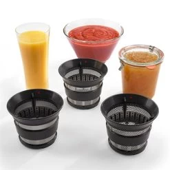 3 tamis à pulpe sont disponibles pour vous permettre de choisir l’épaisseur et la texture du rendu que vous souhaitez. L’accessoire est muni d’une fonction arrêt et contrôle de la pulpe.