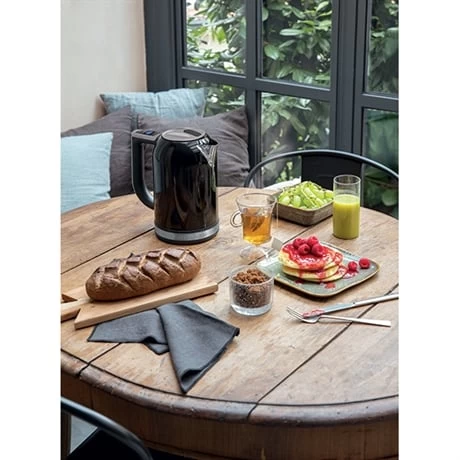 Performances et design pour cette bouilloire électrique noire de grande capacité (1,7 L) munie d’un écran numérique avec 6 réglages de température différents (de 50°C à 100°C), du chaud au bouillant.