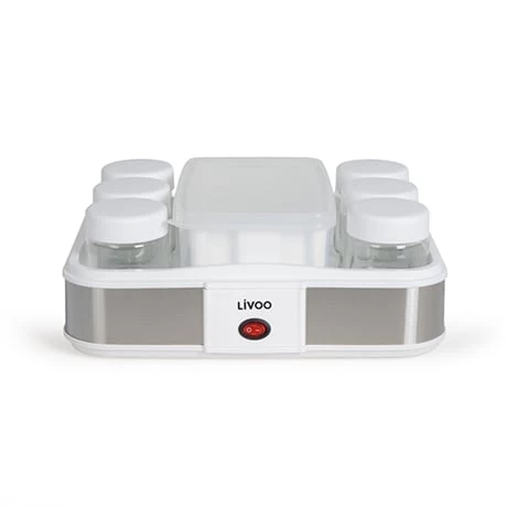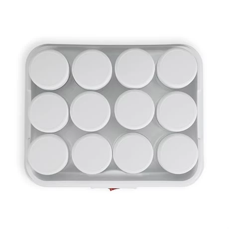 La yaourtière contient 12 pots de yaourt en verre de 0,21 L avec couvercle à visser pour les fermer hermétiquement. Le bac central avec égouttoir vous permettra de faire du fromage blanc avec une capacité de 1,2 L. L’appareil fonctionne simplement avec un interrupteur marche arrêt.