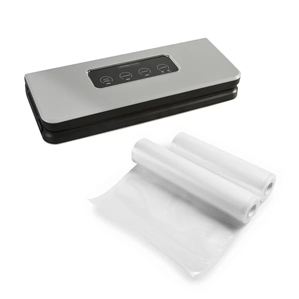 Les rouleaux de sachets à découper sont parfaits pour emballer sous vide vos aliments et les conserver plus longtemps. Ce lot comprend un rouleau 22 cm x 5 m et un rouleau 28 cm x 5 m. Attention, cet appareil fonctionne avec des sacs gaufrés et non pas des sacs lisses. Niveau sonore : 68db.