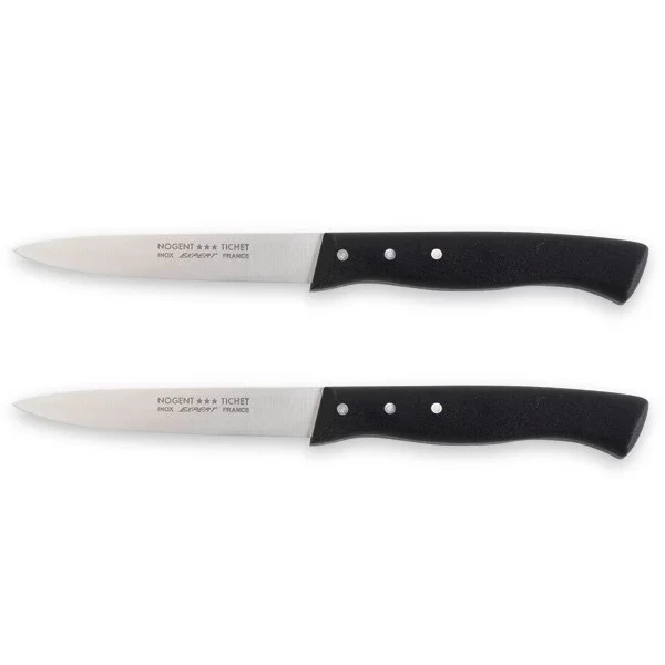 Ce lot comporte deux couteaux d’office 9 cm Nogent Gamme Expert. Ce set de couteaux garantit une qualité de coupe exceptionnelle grâce à sa véritable finition de coupe Affidenté ® avec une denture de 4 dents au mm pour des performances professionnelles : confort d’une lame affilée lisse et durée d’un tranchant denté garanti sans affûtage. Lame épaisse meulée en biseau, sur toute la largeur. Acier inoxydable 18/8, écroui 3 : triple rivetage en inox. Manche ergonomique en polypropylène surmoulé, garanti indémanchable et antibactérien au lave-vaisselle.Â