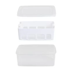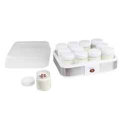 Les pots et couvercles inclus passent au lave-vaisselle. Les pots sont en verre et ont une contenance de 0,21 L et le bac central avec égouttoir pour fromage blanc de 1,2 L. les couvercles sont vissables pour fermer hermétiquement vos pots et les conserver plus longtemps.