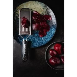 Spécialiste des râpes et ustensiles de découpe, Microplane est reconnue pour la qualité professionnelle de ses produits et leurs performances. Cette gamme Gourmet a été créée afin de spécialiser son matériel et augmenter encore son efficacité, avec notamment des mandolines déclinées en plusieurs fonctionnalités. Inclue dans cette série, la mandoline tranchante Gourmet Microplane est taillée pour découper facilement tous vos fruits et légumes grâce à sa lame en acier inoxydable ultra-affûtée en forme de biseau.