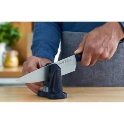 Aiguisez facilement vos couteaux grâce à l’aiguiseur manuel Opinel. Pas besoin d’être un professionnel de l’aiguisage, grâce à son angle auto-ajustable, ses patins siliconés permettent de maintenir votre lame en place. Ses plaquettes en carbure permettent un affûtage de qualité. Très simple d’utilisation, vous pourrez réaffûter efficacement et rapidement vos lames de couteaux.Â
