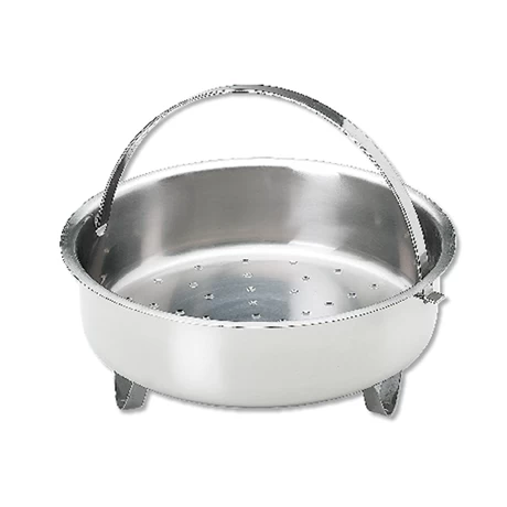 Pratique pour toutes les cuissons des légumes, poissons, volailles ou ravioles, ce Panier Vapeur inox 20 cm se pose simplement dans une casserole. Muni de pieds pour plus de stabilité, il cuit en quelques minutes des aliments qui gardent leurs saveurs et leurs nutriments. Résistant, en inox, il est doté d’une poignée fil pour le saisir facilement et égoutter les aliments. Il se nettoie au lave-vaisselle.