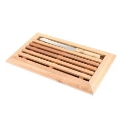 Pratique, cette planche à pain en hêtre massif de Mathon est dotée d’un fond rainuré amovible, permettant de récupérer facilement les miettes de pain. Le couteau dispose d’une lame crantée en acier inoxydable et se pose dans la planche, pour un rangement gain de place. L’hêtre, bois de qualité et huilé, se nettoie facilement et garantit une bonne durabilité dans le temps.
