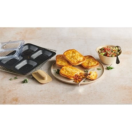 Pour vous assurer une grande praticité, la plaque à rissoles Betty Bossi est dotée de perforations laissant passer la chaleur pour une cuisson plus homogène et un revêtement antiadhésif qui vous permettra de démouler facilement les rissoles. Et en complément de ce kit, un livret de 4 recettes est inclus pour vous donner des idées de déclinaisons : farces épinards, petits pois, viande, saumon, il n’appartient qu’à vous de trouver les meilleures versions des rissoles, ce kit à rissoles Betty Bossi s’occupe du reste.