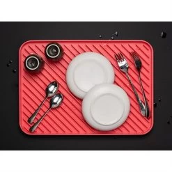 3-en-1, la Trilogy Trebonn est un set complet, design et amusant qui est conçu pour une grande praticité. Attention, si l’égouttoir et le dessous de table peuvent être mis au lave-vaisselle, la planche à découper doit être lavée à la main pour ne pas détériorer le bois.